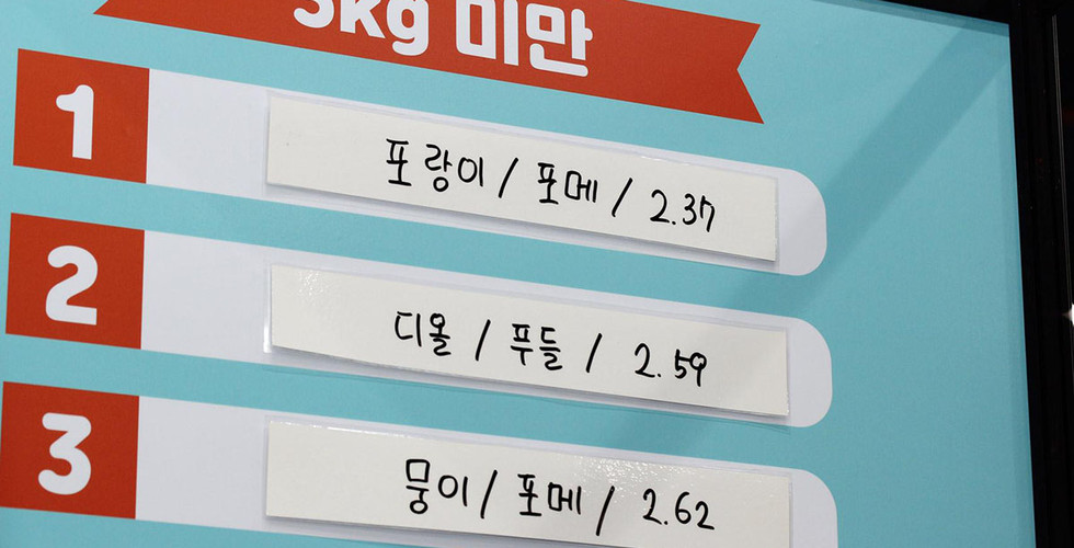 달려갈개 모든 부문(몸무게)에서 1.97초로 1위를 한 브라우니 (푸들)